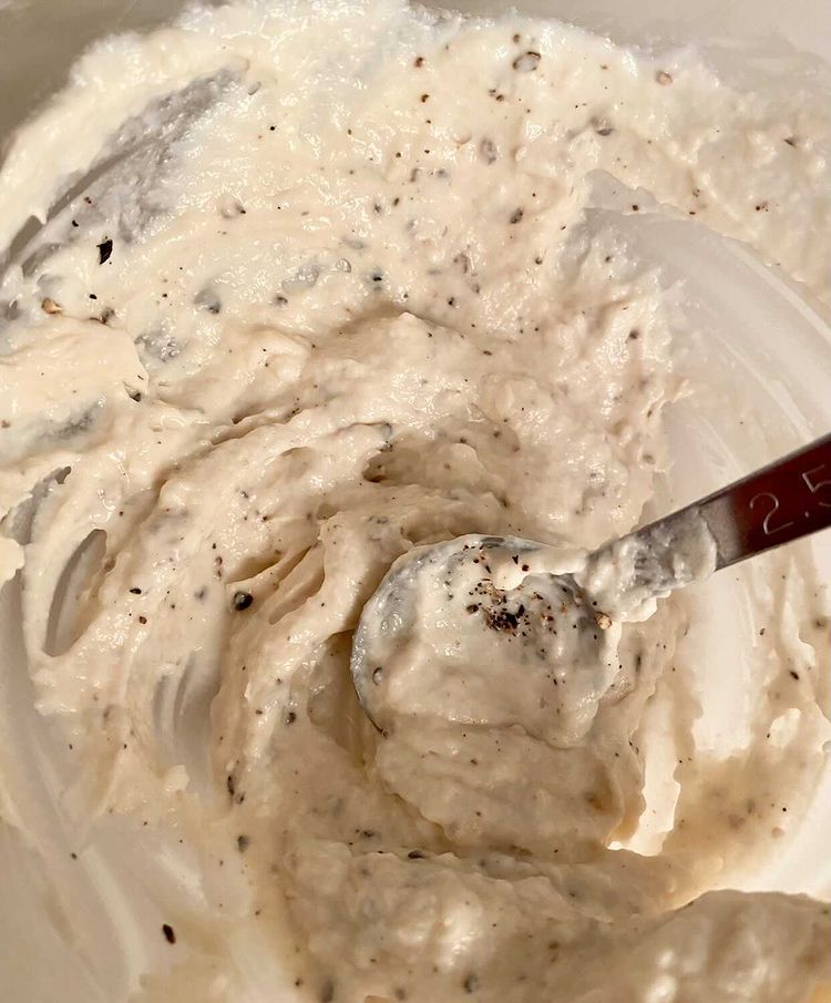③ボールに酒粕・クリチー・白だし・黒胡椒を良く混ぜておく。