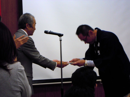 県内外に岡山県産の果物を使用した、こだわりの逸品 を募り、「おかやま果実」という統一ブランドで、全国に広 く発信して行くために制定された「おかやま果実」。 この「おかやま果実」に「無糖無添加・じゅんまいうめざけ」 が認定され、認定式が行われました。 (岡山県内14社の14商品が認定審査の結果、認定を受けました)  認定後の各社1分間のプレゼンでは、準備していた映像 が出ないというトラブルもありましたが・・・なんとか終了。 今後は「おかやま果実」ブランドとして色々なところで紹介 されます。 是非、こだわりの”無糖”梅酒「じゅんまいうめざけ」を味わっ て下さい!