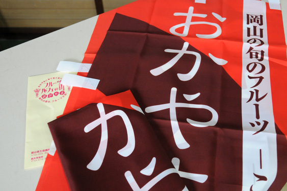 この暖簾を見掛けたら「おかやま果実」認定商品があると