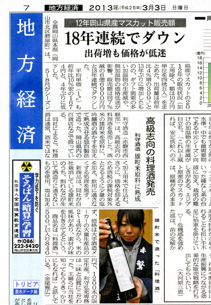 山陽新聞(2013・3・)「地方経済」に酒一筋の こだわり