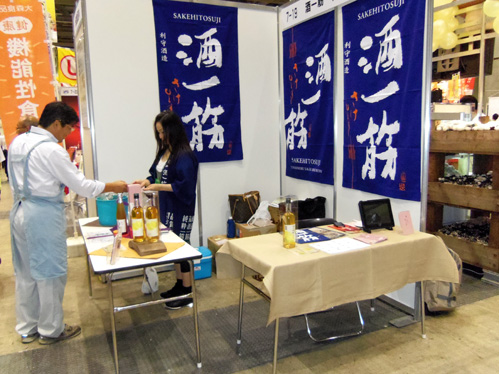 酒一筋ブースでは新商品の「国産檸檬酒」と純米酒仕込み