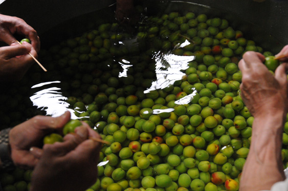 今年もこの季節がやってきました・・・ 毎年お願いしているJAさんから鴬宿梅が入蔵。 さあ、ヘタ取り開始です! 一個一個丁寧にヘタを取り除いていきます。 毎年の事ですが、これが気が遠くなる作業なんです。 でも、酒一筋ならではのあの味をだすためには どうしても欠かせない作業。 酒一筋の梅酒、檸檬酒を飲んで暑い夏を乗りきりましょう!