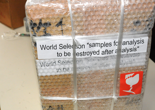 ベルギーへ”2014年モンドセレクション”の出品酒発送準備。