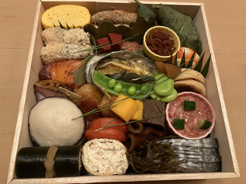 松葉留め、鼈甲生姜、赤蒟蒻、厚焼玉子
