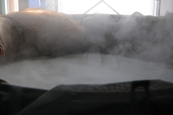 ”です。 外気温がまだ低い訳では無いので、蒸しの蒸気も 白く立ち上るという程ではありません。 それでも、米を蒸す蒸気を見ると酒造りの季節 到来を感じさせます。 これからどんどん忙しくなっていきますね・・・ さあ、頑張っていきましょう!
