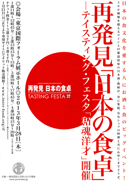 再発見「日本の食卓」テイスティングフェスタ「和魂洋才」 に酒一筋も出展致します。