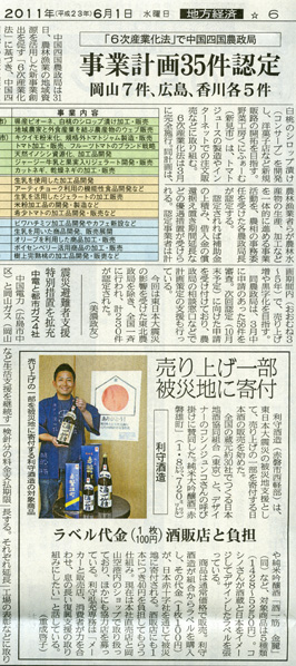 (2011・6・1)「地方経済」面に酒一筋 が取り組んでいるコシノジュンコ義援金の記事が 掲載されました。 息の長い復興支援を続けていければと思います。