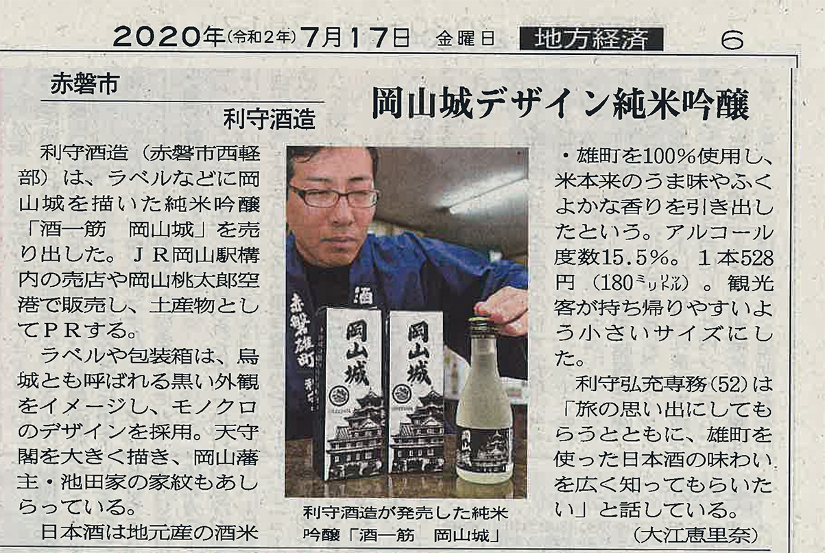 おかやま特産「雄町米」で仕込んだ純米吟醸酒「岡山城」を掲載頂きました。