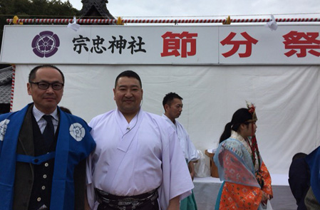 節分は「豆まき」「恵方巻」「恵方呑み」  午前中は宗忠神社の「節分祭」に参加しさせて頂き、壇上から「豆まき」をする 機会を頂きました。 豆まきの後は、大元鍋を囲んで御直会(おなおらい)。 その席で、同じテーブルの仲間と「恵方呑み」 「平成27年も元気でがんばれます様に・・・」  2010年何気にTwitterで呟いた「恵方呑み」が、みなさんのお蔭で年々広がりを みせています。ありがとうございます! (恵方呑み:日経新聞) 日本酒を飲むきっかけにまた、この一杯から日本酒に興味を持って応援して下さる方が 増えれば嬉しい限りです。