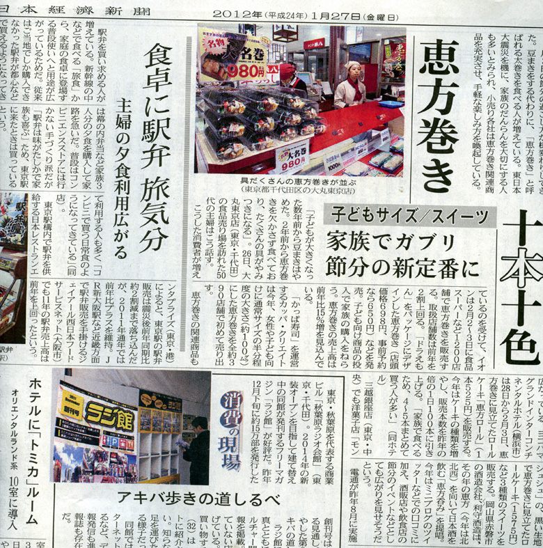 日本経済新聞(2012.1.27)【消費】面で「恵方巻き 十本十色」