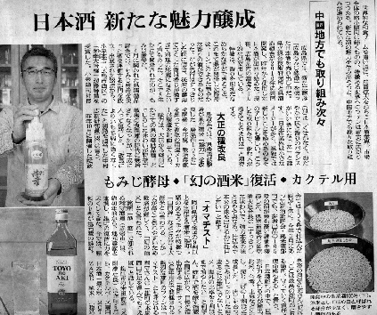 「日本酒の新たな魅力醸成」毎日新聞2015.5.14 中国地方での取り組みという事で、岡山の「雄町」についての 取材を受け、ご掲載いただきました。
