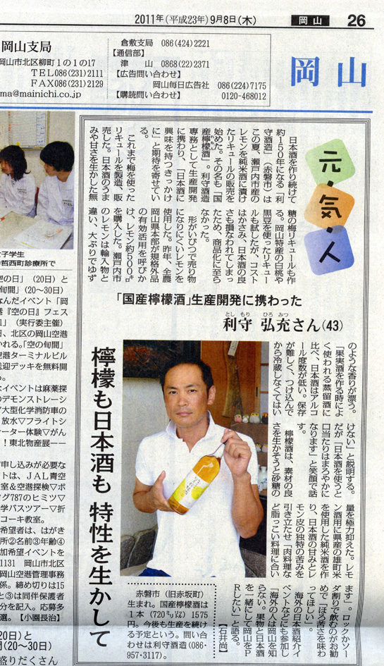 2011・9・8 毎日新聞(岡山版)「元気人」