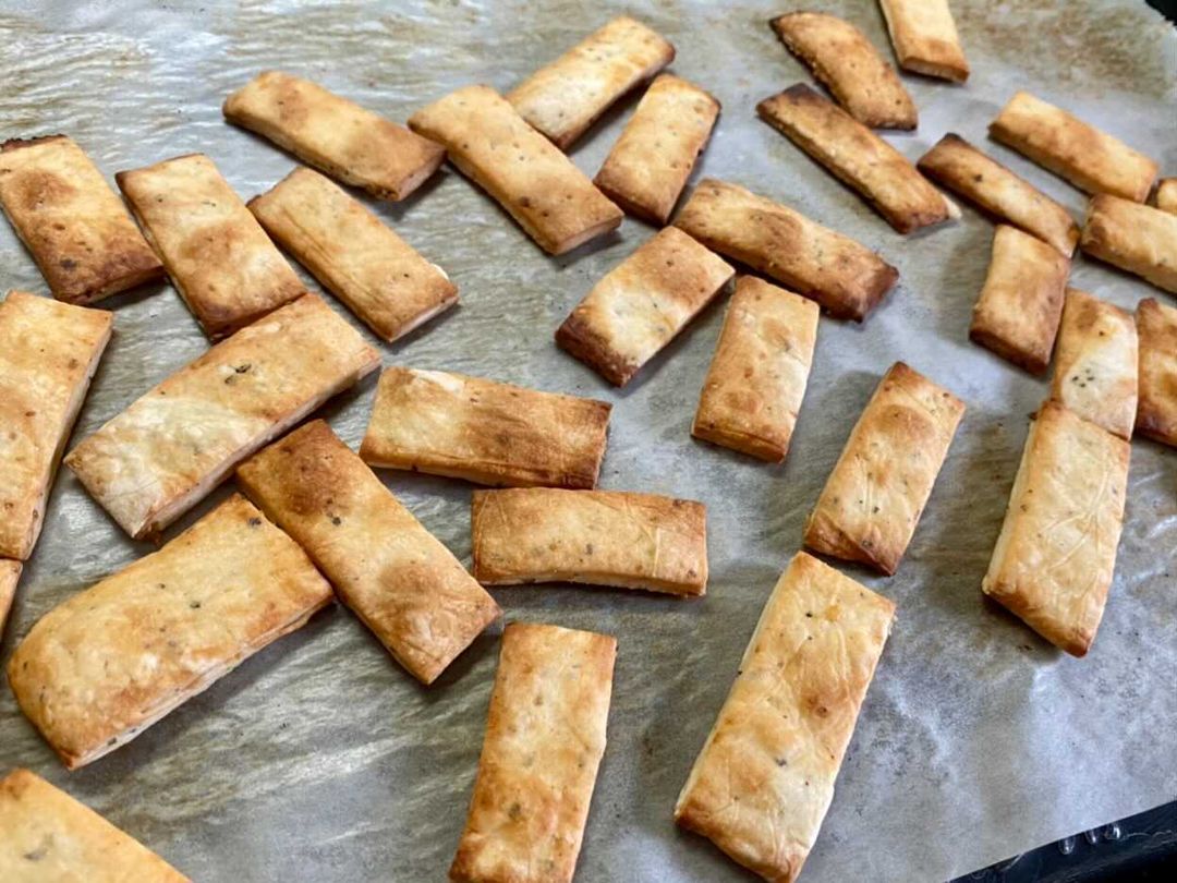 ③②の袋をカットして、食べやすい長さにカットしてテンパンに広げ、160度で予熱したオーブンで13分から15分焼く。