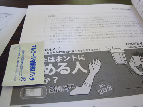 研修の中で紹介された「アルコール体質試験パッチ」。