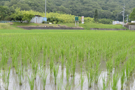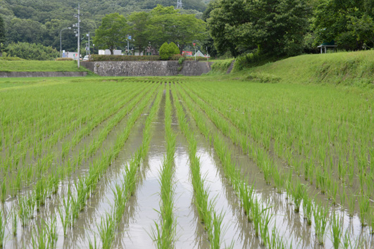 田植祭から二十日経ちました。 ご安心ください!雄町の稲は順調に成長しております。 稲の生長に伴って、畔の雑草も成長するので大変ですが・・。
