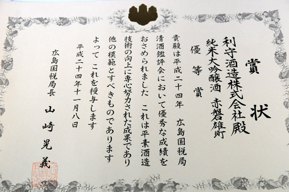 「平成24年広島国税局清酒鑑評会」表彰式・製造技術研究会