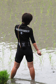 田植日和に恵まれました! 「酒一筋・田植祭2014」開催です。 今年も全国から多くの雄町スト(?)が終結 一つ一つ丁寧に手植えを行っていきます。 さすがに何年も参加されている方は手慣れたもの、予定よりも早く終了。         終了後は、これも恒例みんなでおにぎりをほおばりながらの楽しい会食。 ありがとうございました、お疲れさまでした!