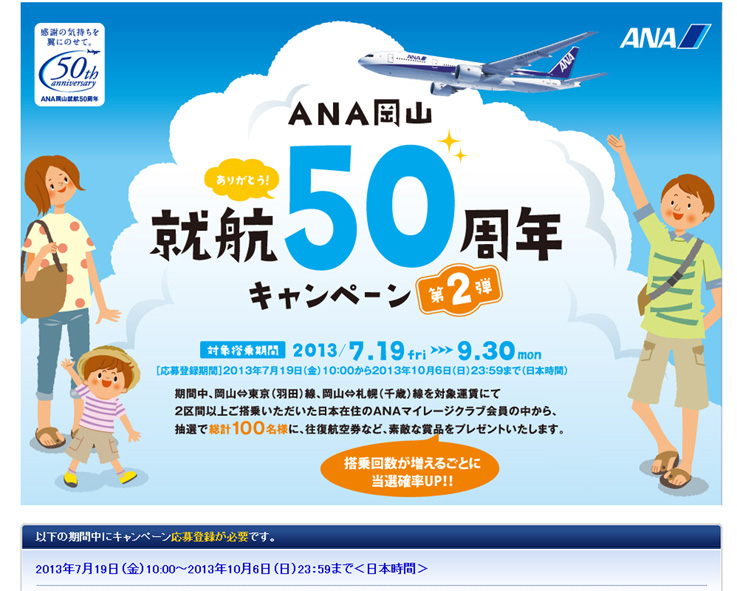 ANA岡山 就航50周年キャンペーン