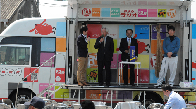 赤磐と言えば「雄町米」という事で、当社社長が雄町米復活までの苦労について話をさせて頂きました。(収録場はJAあかいわ・赤坂支所にある雄町米の功労者・加賀美村長の石碑の前)